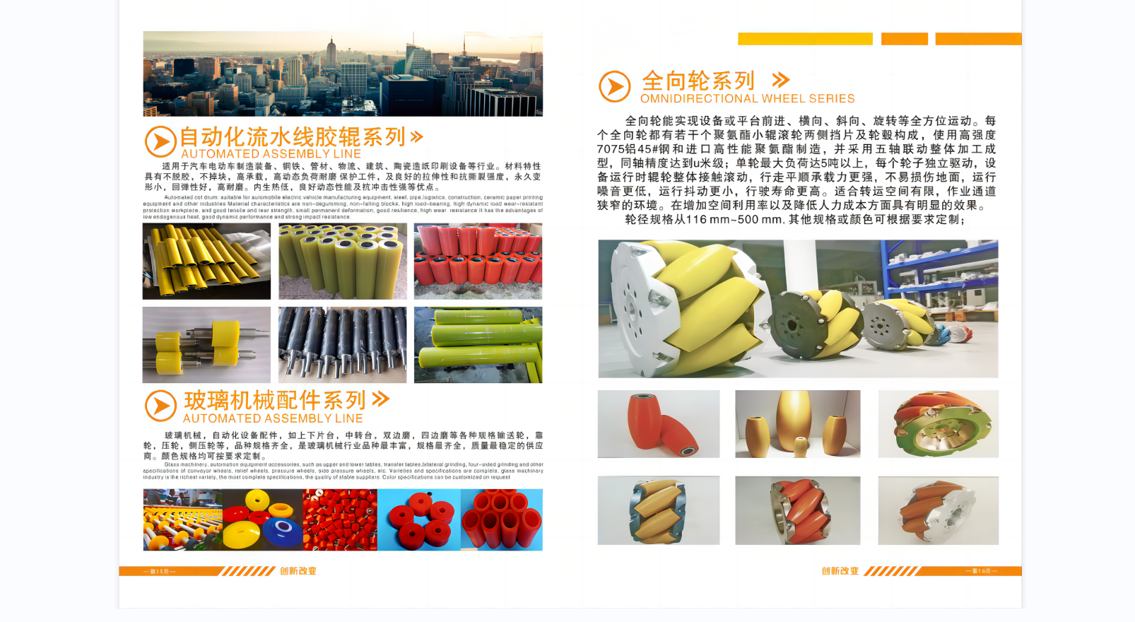 我们可以为您提供聚氨酯圆带、V型带、聚氨酯异型挤出制品、聚氨酯包胶件、聚氨酯气动管、聚氨酯耐磨制品及各类零部件等;这些产品被广泛应用于食品、饲料、陶瓷、玻璃、家用电器、货物搬运化学工业、印刷、纺织印染、建筑材料、重工业等各行业机械及相关产品OEM配套。