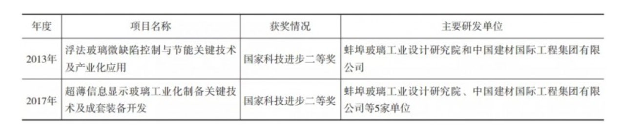 1999年5月,经国家科学技术部批准组建,中国建筑材料集团公司组建国家玻璃深加工工程技术中心。2010年12月,经国家科技部批准,依托蚌埠玻璃工业设计研究院和中国洛阳浮法玻璃集团有限责任公司组建的浮法玻璃新技术国家重点实验室,2015年7月,该实验室通过科技部验收并正式对外开放,是我国玻璃行业首个企业国家重点实验室。