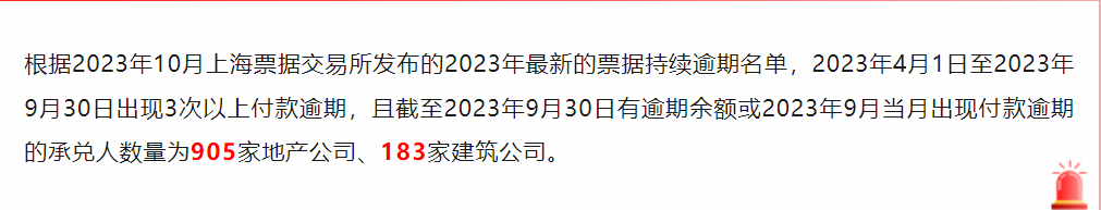 截止2023年第三季度结束,票交所公布持续逾期名单!这次名单更长!地产仍是其中重灾区,地产商票的溃败,预示着地产行业的黑暗时刻仍在继续!