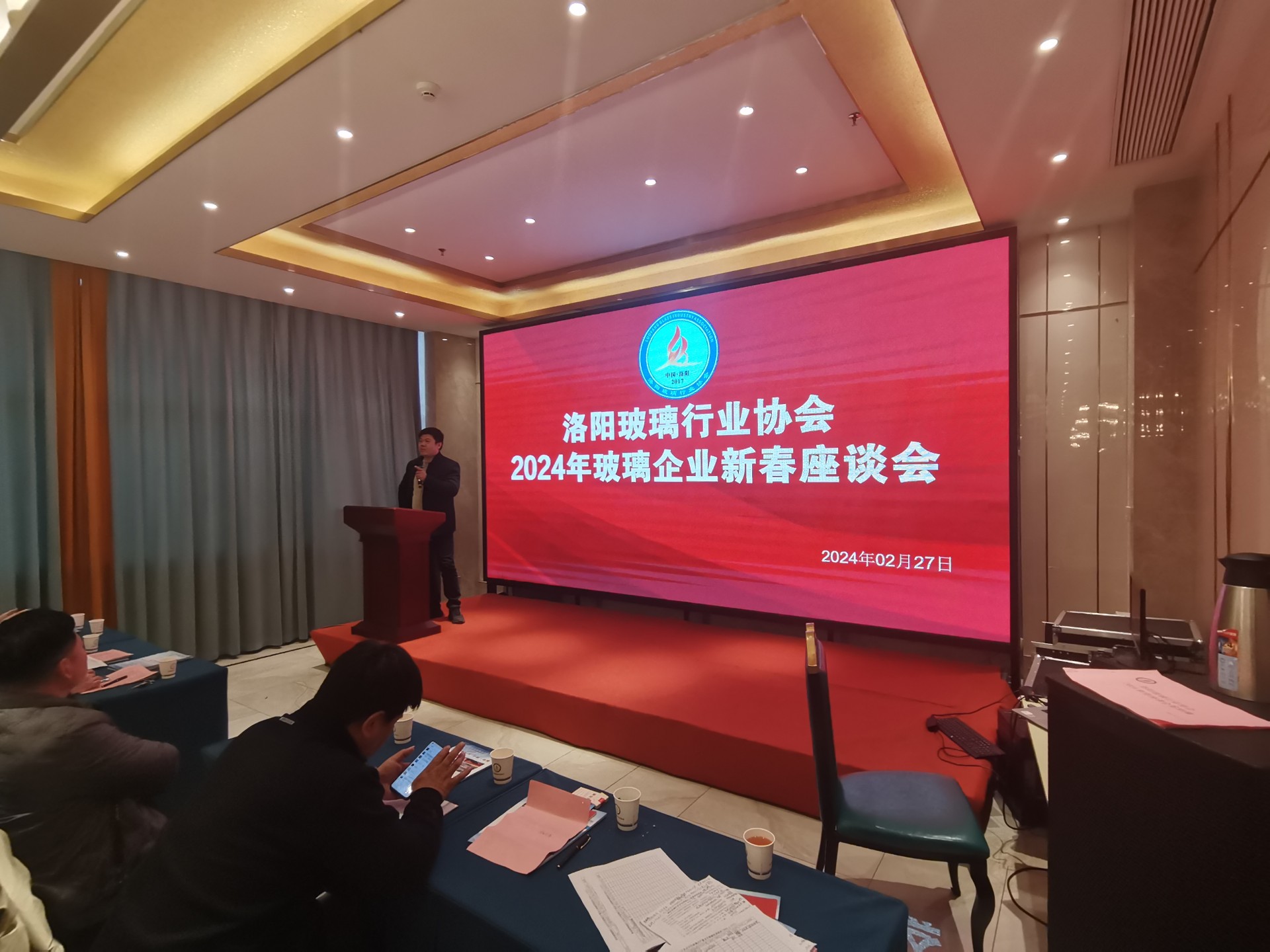 2024年02月27日,洛阳玻璃行业协会在洛阳市西工区解放路洛阳东华大酒店和贵厅举办了洛阳玻璃行业协会玻璃加工企业新春座谈会,参会人员协会玻璃深加工厂负责人,在洛协会理事会成员,特邀洛阳北方玻璃技术有限公司总裁办副总裁调研员侯会川先生、销售部贾部长,以及会员单位上海赢火虫律师事务所洛阳运营中心李海涛经理出席。在协会会长张中的倡导下,本次会议以“应对寒冬,抱团取暖,集采降本,管理增效”为主题召开。